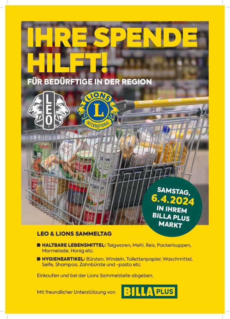 Die österreichischen Hilfsorganisationen LEO und LIONS Clubs starten in Kooperation mit BILLA PLUS wieder die jährlich stattfindende, österreichweite Sachspenden-Sammelaktion für Menschen in Not.