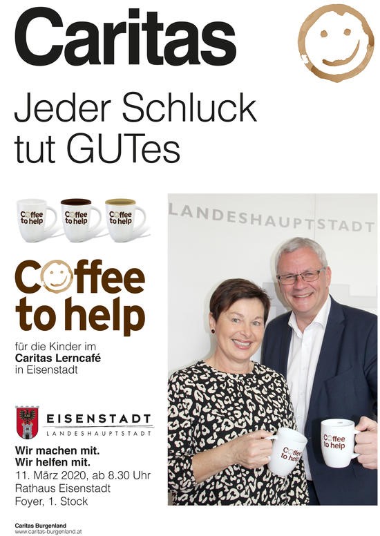 Bürgermeister Mag. Thomas Steiner und die Caritas Burgenland luden am 11. März 2020 zum Charity Frühstück „Coffee to help“ ins Rathaus Eisenstadt ein. Bei Kaffee und Kuchen wurden Spenden für die Kinder im Caritas Lerncafé gesammelt. Viele SchülerInnen haben im letzten Jahr das Caritas Lerncafé in Eisenstadt (jetzt im Pongratz-Haus) besucht und gratis im Rahmen dieser Nachmittagsbetreuung Lern- und Nachhilfe erhalten.